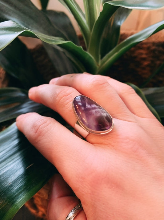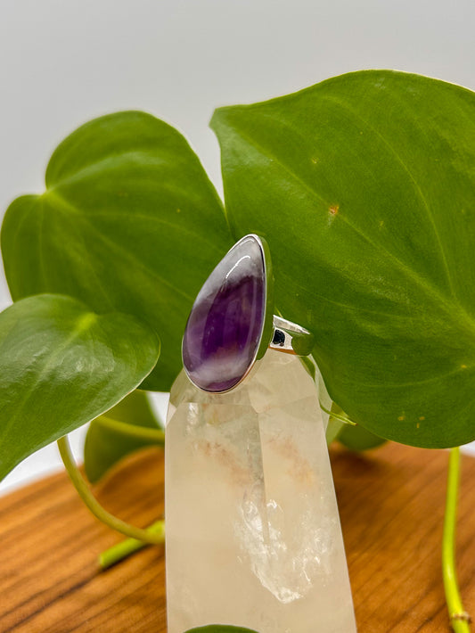 Chevron Amethyst Teardrop Ring Size 6