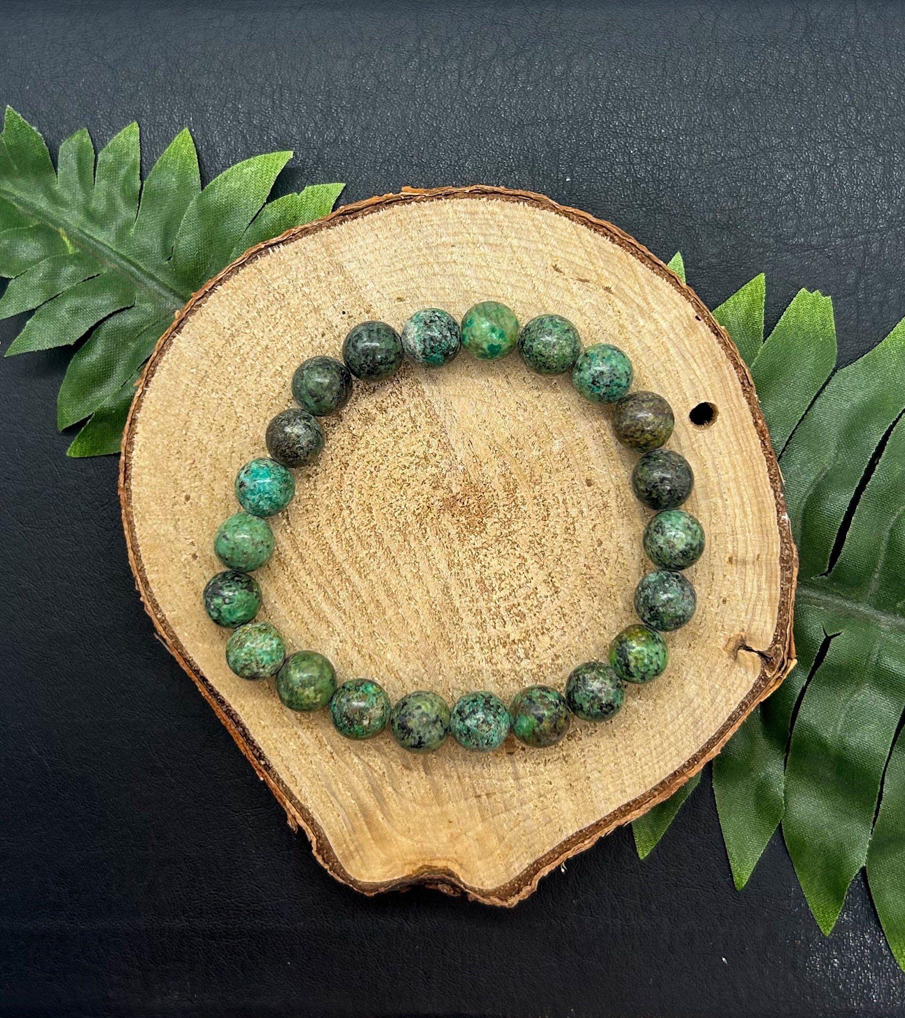 Disclaimer: Each beaded bracelet may vary slightly in appearance (ie. pigment, inclusions, etc.) due to this being a natural product.
