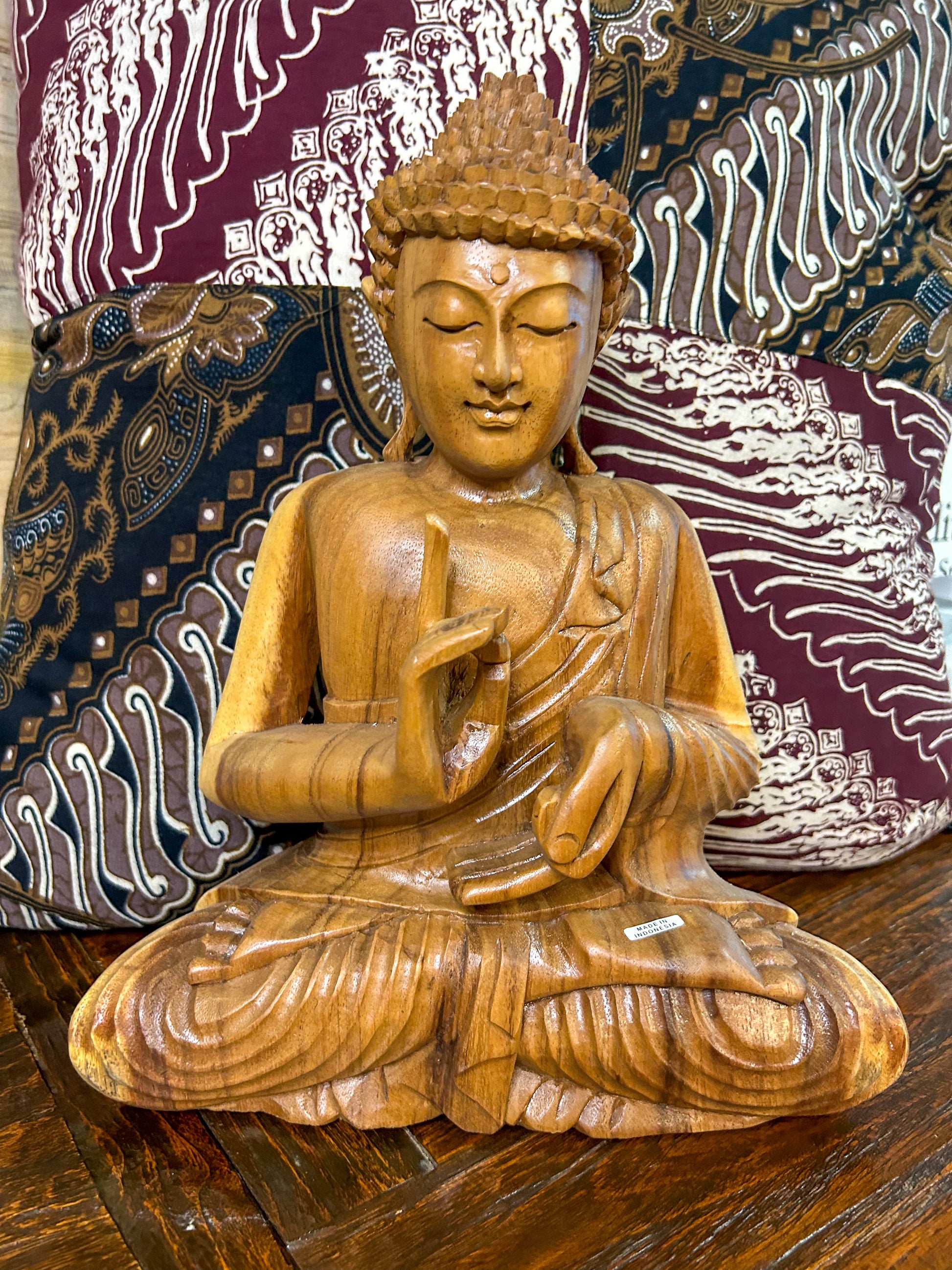 This beautiful Buddha carving was hand-carved by a talented Indonesian artisan.