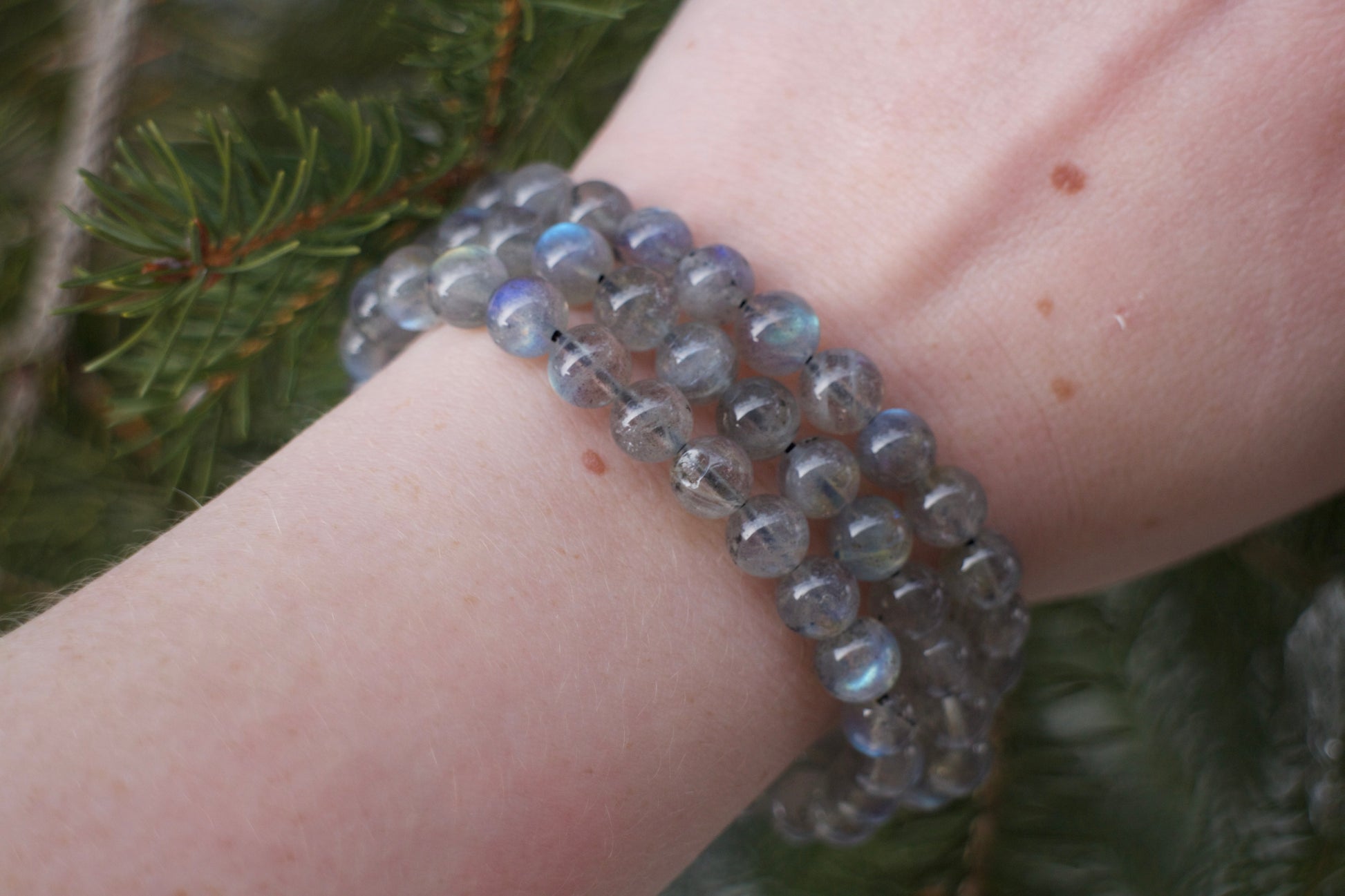 These sparkling bracelets are made of high-quality labradorite beads and elastic string.